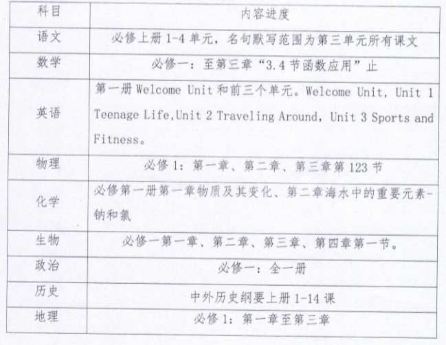 武汉市2025-2026学年度高一年级期中调研安排及考试范围